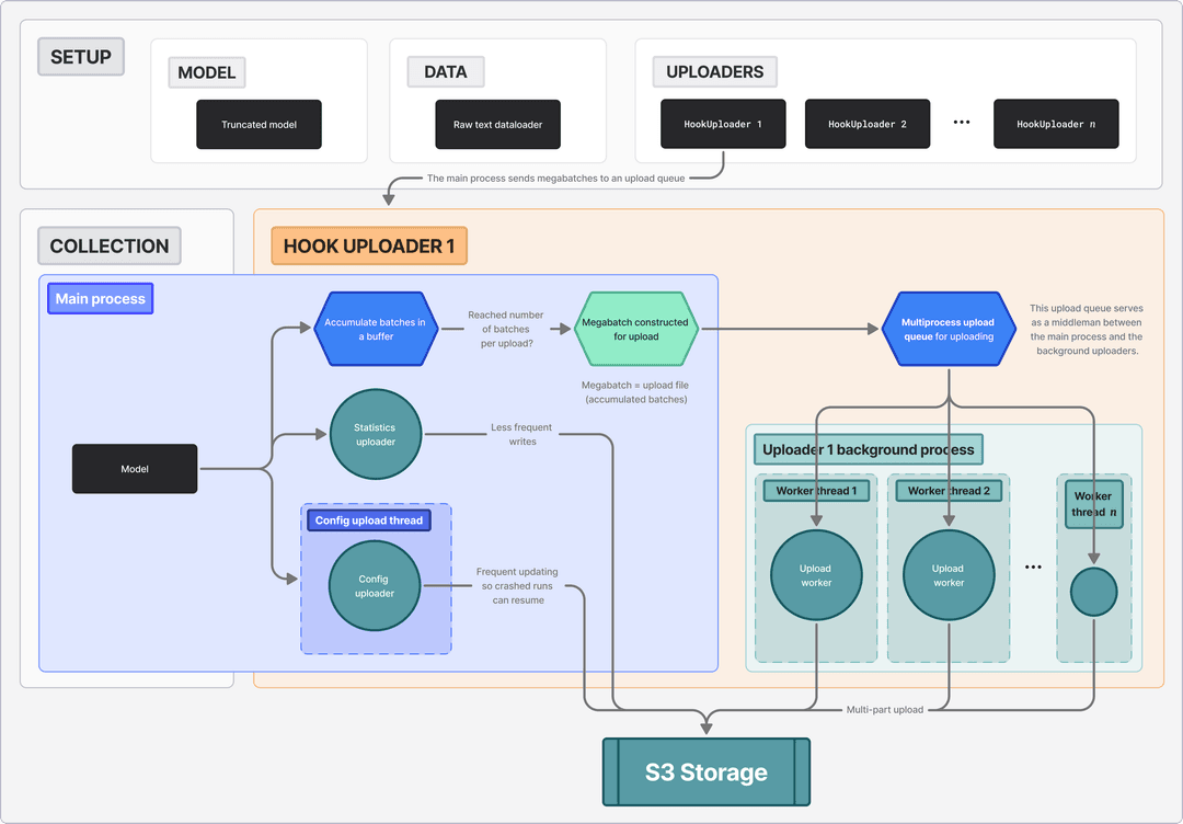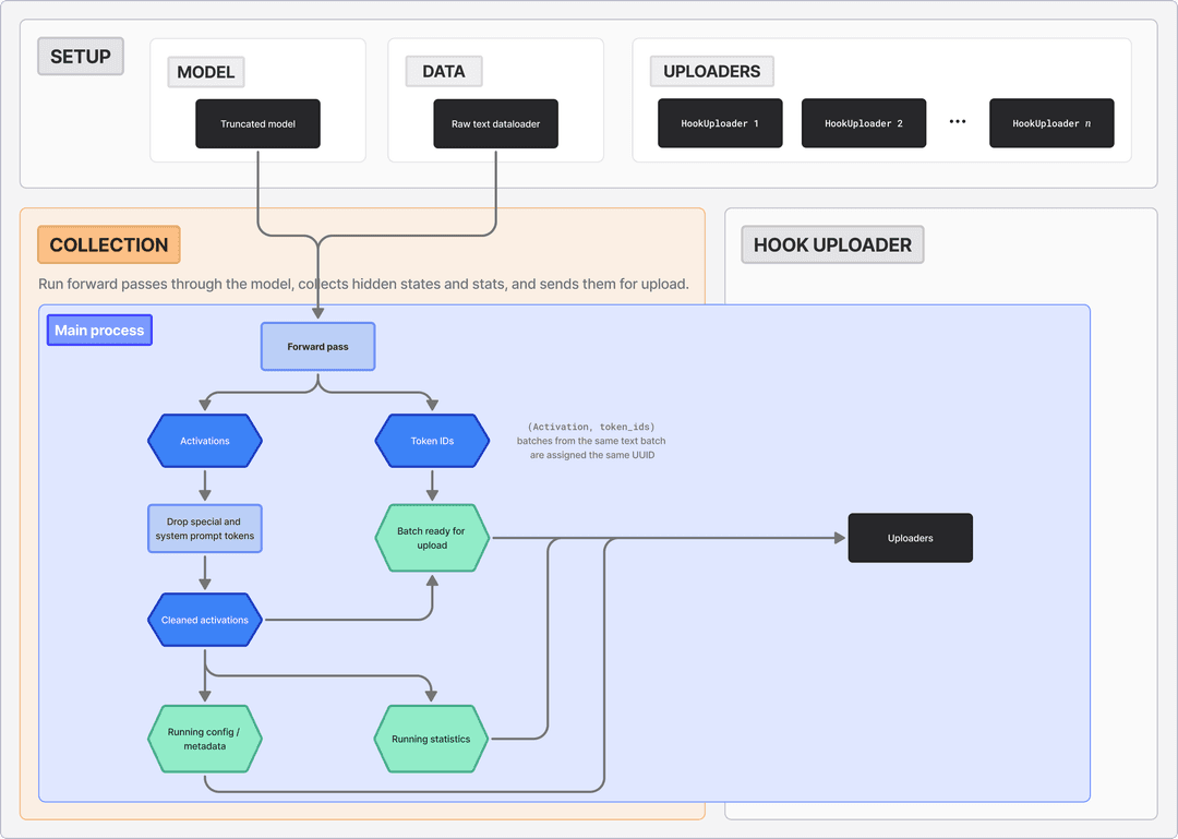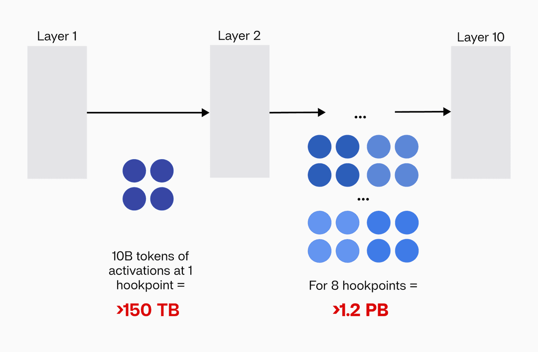 Training interpreter models on frontier LLMs requires collecting billions of activations (the model's "mental state" at each step). At scale, storing these becomes prohibitively expensive.